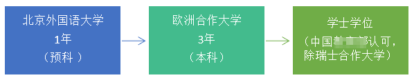 学生在北外完成一年预科的课程,之后转入欧洲合作学校继续学习本科(约三年),在完成相应课程并达到毕业要求后,可获得其颁发的学士学位。