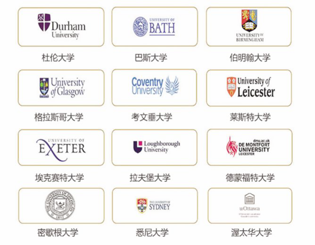 截止2024年,3+1国际本科(SQA-AD)项目国外合作院校近50所,项目学生在校完成国内学业后,可根据自己的意愿及合作大学的入学要求,自主选择就读项目对接的国外合作大学及合作专业。往届学生国外毕业院校部分名单如下: