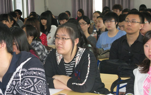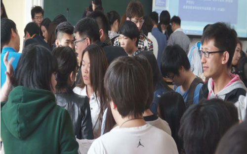 讲座之后是外方院校展会和答疑的时间,此次受邀来到现场的外方院校有约克圣约翰大学、赫尔大学、德蒙福特大学、朴茨茅斯大学等,同学们可以根据自己的需要向院校负责人当面咨询。11级毕业班的同学们大多申请到了学校,他们更多是咨询留学手续具体流程以及英国学校的详细情况。外国院校的老师们耐心的为同学们解答疑惑,提供建议。