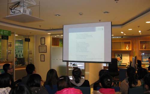 渣打银行负责培训的李铣女士充分调动起同学们的积极性,他询问大家将来的就业方向,她向那些未来金融界的“同行”问好,大家一下子被她逗乐了。她告诉大家  渣打银行英文名字的由来,“Standard Chartered Bank   ”是在维多利亚女皇的特许(即“渣打”这个字的英文原义)下于1853年建立的,渣打银行在发展家的银行中拥有地位,在全球拥有1400多家分支  机构,遍布世界56个国家,是早在设立分行的外资银行之一(1858年),并且从未中断过在大陆的业务运营。她为大家讲解了银行的组织构成,包  括集体架构和支行架构等。渣打银行的社会责任是“Seeing is believing(看得见的希望),Living with   HIV(关心艾滋行动)”,在悠久的历史中形成了自己独特的企业价值观,不仅致力于为世界提供更好的金融服务,也以其人道主义理念承担着企业的社会责任。
