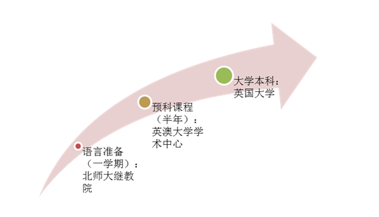 本项目是针对学习能力强且有意愿进入英国排名前30大学的学生。该课程在北师大学习一个学期后可进入英国排名前30名大学的半年制预科课程。该项目在为学生夯实语言能力的同时,学习部分预科准备课程,为在国外阶段顺利完成预科阶段的学习打下坚实的基础。