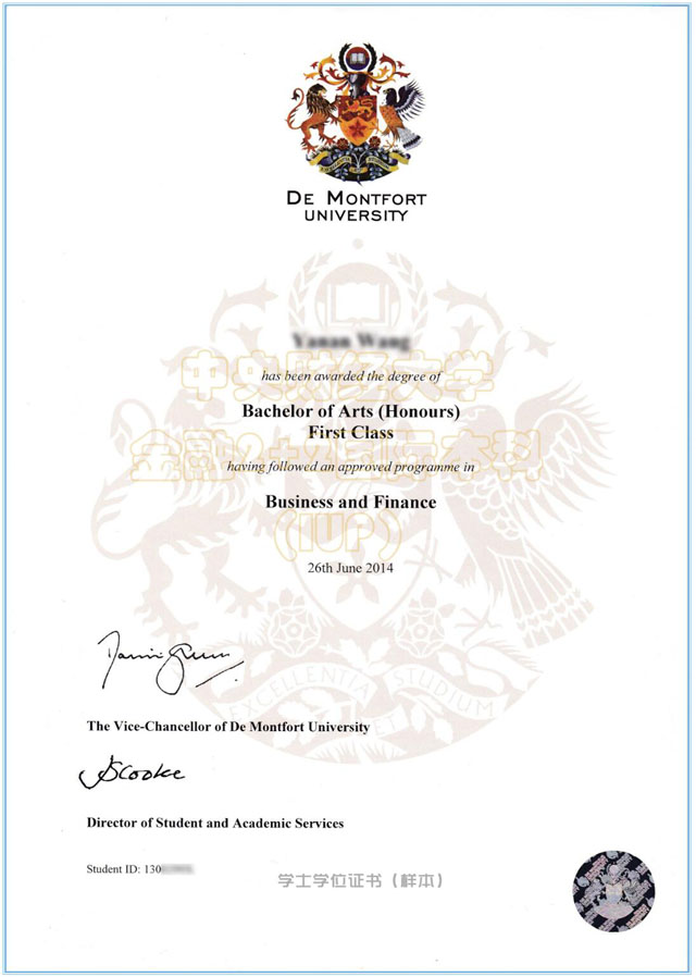 学士学位认证书(样本)